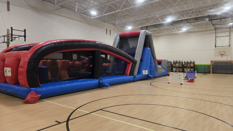 Look no further than the Double Lane Obstacle Course (Wet or Dry Slide)! This inflatable ride boasts two lanes, enabling two guests to travel through the obstacle course and slide down the huge double lane slide at the same time.